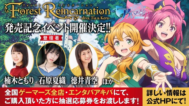 また「フォレストリンカネーション」のリリースイベントの開催も決定!イベントには楠木ともり、石原夏織、徳井青空ほか豪華声優陣が登壇。イベントの応募方法はゲーマーズ全店・エンタバアキバで「フォレストリンカネーション -diva. Tia & Kera- (cv.楠木ともり、石原夏織)」を購入、シリアル番号入りのイベント応募用紙をもらい、応募用紙に記載されている申し込み期間内に受付専用ページより申込もう。購入枚数分応募可能だ。詳細は応募用紙及びコチラへ!