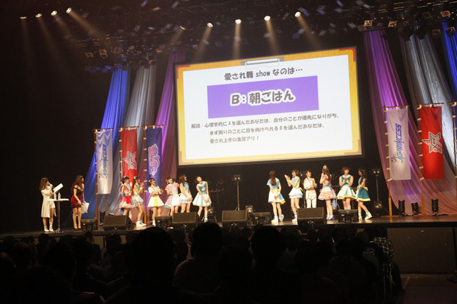 そしてそれぞれのユニットの紹介を兼ねたコーナー「天下分け目の!愛され舞show チェック~!」へ。IDOL舞SHOWのメンバーたるもの、これからたくさんのファンの皆様に愛されていかなくてはいけないと、『どっちの答えが、心理学的により愛される回答か』を答え合わせしていき、最終的にナンバー1愛され舞showと、ワースト愛され舞showを決定するというコーナーだ。