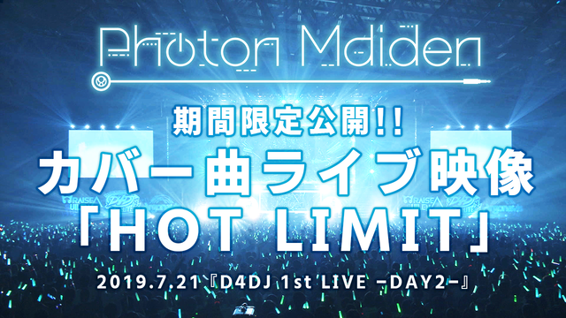 これは2019年7月21日に幕張メッセ国際展示場1ホールで行われた「D4DJ 1st LIVE -DAY2-」でのPhoton Maidenがカバーした「HOTLIMIT」ステージ映像。11月30日までの期間限定公開となる。