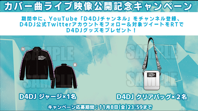 抽選で「D4DJ ジャージ」を1名、「D4DJ クリアバッグ」を2名にそれぞれプレゼント。