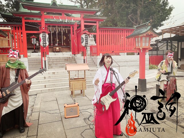 「神巫詞-KAMIUTA-」はアニメーションの展開と並行しながら、HARUKA役の福山沙織を筆頭にギターのYU-YA:ベースのIORIと実際にメンバーを揃え、リアルなバンドとしても活動を行う。