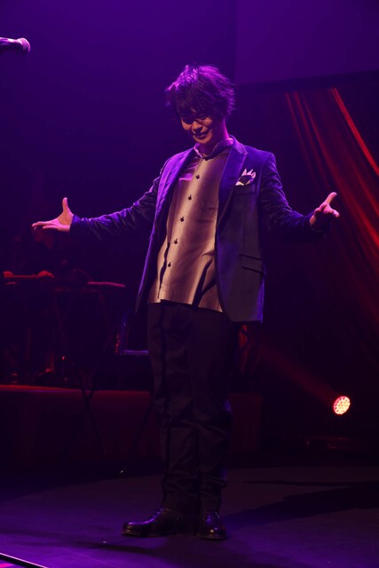 ここでお楽しみ企画として土岐の大好きな曲をカバーするパートへ。米米CLUBの『浪漫飛行』では会場を飛び出していきそうなほど伸びやかな歌声を届け、「Wow」という掛け声では「一緒に!」と観客を遥かなる旅へと誘い、MISIAの『つつみ込むように…』では、広い声域とエモーショナルなファルセットを存分に生かしてソウルフルに歌い上げた。