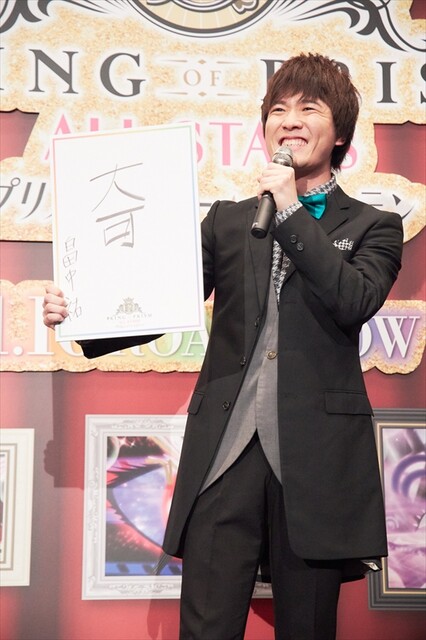2016年に公開された1作目『KING OF PRISM by PrettyRhythm』(2016年1月9日公開)から約4年経っての総集編ということでキャストがキンプリを漢字一文字で表すという企画では寺島は「変」、畠中は「奇」、武内は「応」の一文字を掲げ、武内は「4年間何を原動力に走ってこれたかというと皆さんの応援。この作品を色々な方々に広まるきっかけになったのも最初から応援してくれているファンの皆様の勢いあってこそですし、応援の応なくしてキンプリは語れません」とファンに感謝を伝え、畠中は「奇襲のように心の隙間にストレートパンチをいれてくる作品。衝撃的で何が起きているか分からないけど一人一人の色んな物語が繋がってここまでこれたという奇跡、奇襲、色んな意味を含めての奇です」と話すと、字のバランスで“奇”が“大可(タイガ)”と読めると、突っ込みが入り会場も爆笑。「タイガじゃないから!」と場を必死に収め、寺島は「やっぱり変な作品なんですよ!“なんか変だけど面白い”、からすべてが始まっていて、監督曰く、僕達がやっていることは変わりないけどみなさんの心や世の中が変化して受け入れて大きく盛り上げてきてくれた、と」など、各々が4年間を振り返りました。