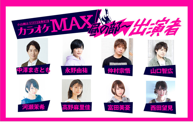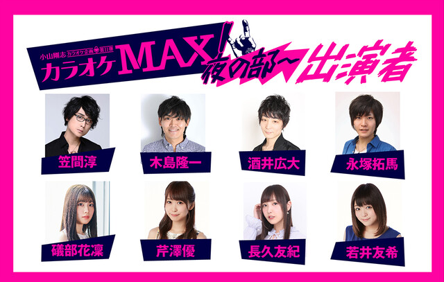 2020年2月8日(土)神奈川・カルッツかわさきにて、JOYSOUND presents 小山剛志カラオケ企画第11弾『カラオケMAX』を開催。『カラオケMAX』は、声優・小山剛志がプロデューサーを務め、人気声優たちがカラオケを披露するイベント。開催する毎に盛り上がりをみせ、毎回と言っていいほどTwitterのトレンドを賑わせている本イベントも、第11弾の開催となる。なお、チケットは現在先着先行販売中、2月1日(土)一般発売スタート。