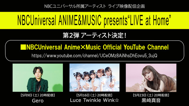 まとめると!●「NBCUniversal ANIME&MUSIC presents“LIVE at Home”」第2弾アーティスト発表!