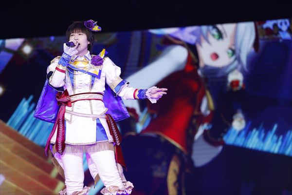 続いて壮厳な前奏と共に現れたのはひびき様こと紫京院ひびき(斎賀みつき)。「純(ピュ)・アモーレ・愛」で圧倒的な歌唱力と存在感を見せつけました。ここでふわり(佐藤あずさ)が再びステージへ。サプライズで新曲「パルプス・ノンフィクション♪」を初披露し、配信を見ているファンからは「パルプスの伊吹を感じる」「さわやか!かわいい!」と喜びのコメントが殺到しました。