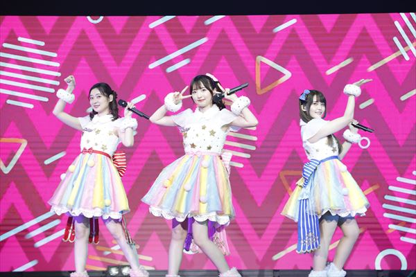 続いて舞台中央に踊り出たのはドロシー(澁谷梓希)&レオナ(若井友希)。「Ha Cha Me Cha テレパシー」で息ピッタリのパフォーマンスを披露します。楽曲の途中でまさかのシオン(山北早紀)もサプライズ登場。配信を見ているファンを一気に引き込みます。続く「トンでもSUMMER ADVENTURE」ではドレッシングふらわーの5名がダンスで豊かな個性を見せつけました。