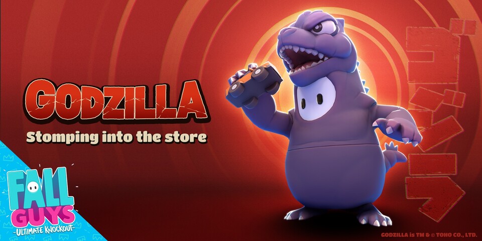 『Fall Guys: Ultimate Knockout』は最大60人で同時接続プレイできるPlayStation4とPC向けオンライン対戦ゲーム。2020年11月3日(火)より期間限定でゴジラとのコラボを行う。期間中はゲーム内で獲得できるCrown10個と引き換えにゴジラの新スキンを入手できる。