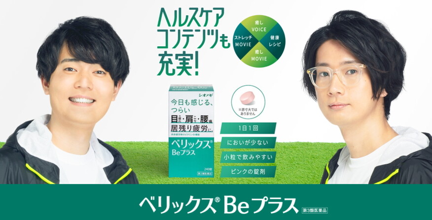 ヘルスケア価値の提供を通じて社会に貢献するシオノギヘルスケア株式会社は、ビタミンB1主薬製剤「ベリックスBeプラス」において、2020年11月4日(水)より、人気声優・江口拓也(えぐちたくや)さん・駒田航(こまだわたる)さんを起用した「レッツ!疲労とろう!! ベリックスBeプラス」オリジナル動画コンテンツのプロモーションを開始。