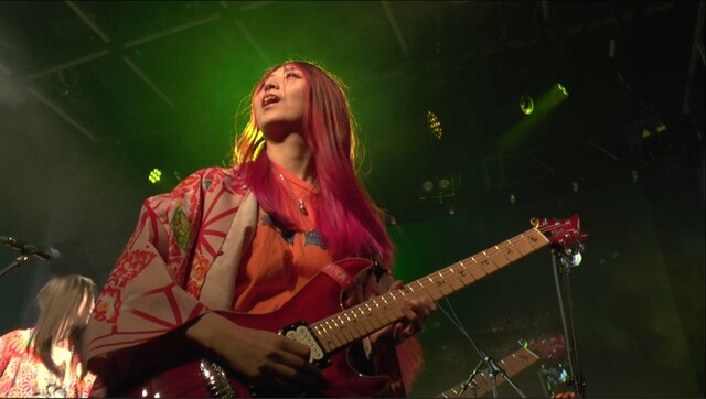 「クソゲーって言うな!」で太田彩華は、コントローラー型マイクを手に、激しく疾走する楽曲へ身を任せ、跳ねながら、ときには叫び声も上げ、観客たちを煽るように歌う螺子を外したパンキッシュなステージングを見せていた。楽器を外したとたん、自由奔放に暴れゆく彼女の姿も素敵じゃない。