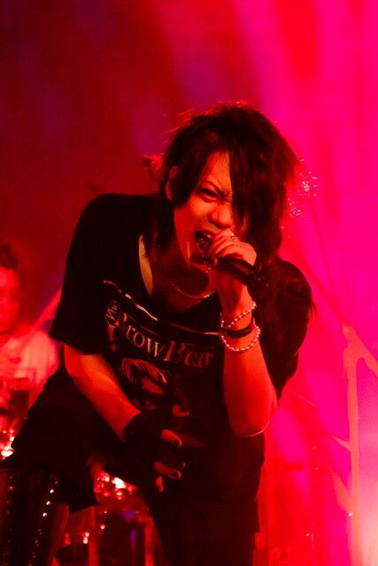 ヒリヒリとするような刺激を与えるスリリングかつハードボイルドな「火炎」では、スタンドマイク越しにRyujiが熱情した想いをぶつけていた。マイクスタンドをグッと力強く握り歌う姿がとても凛々しい。その表情は、気高き野獣のよう。一転、美しくも淡い景色を描きだすバラードの「Oblivion」では、込み上がる哀切な気持ちを、傷を負った想いのままに歌うRyujiの姿が舞台の上にはあった。落ちサビで響いた心壊れそうな声、その後に続く想いを乞うように歌う様から眼を逸らせなかった。