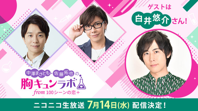 まとめると!●『100シーンの恋+』のニコニコチャンネル『中澤まさとも・佐藤拓也の胸キュンラボ from 100シーンの恋+』第3回ニコニコ生放送を7月14日(水)に配信!