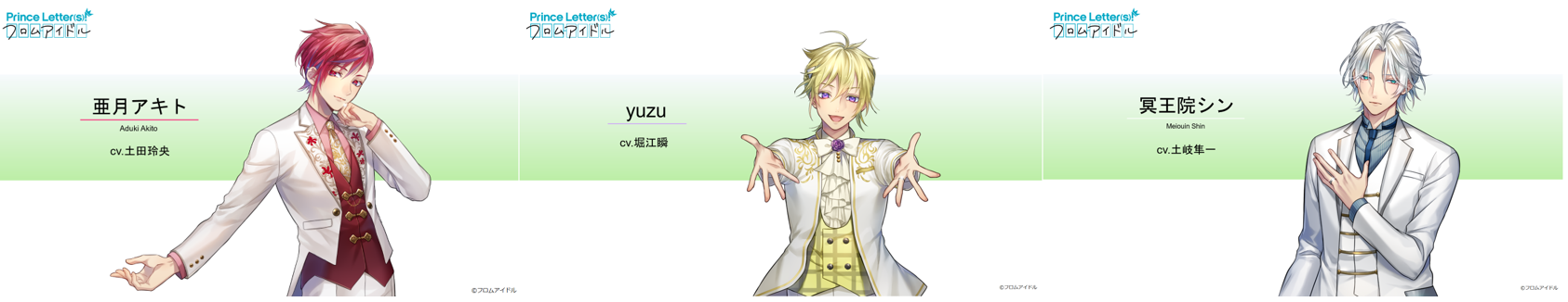1.三人の話〔Prince Letter(s)! フロムアイドル 亜月アキト(CV.土田玲央)、yuzu(CV.堀江瞬)、冥王院シン(CV. 土岐隼一)〕