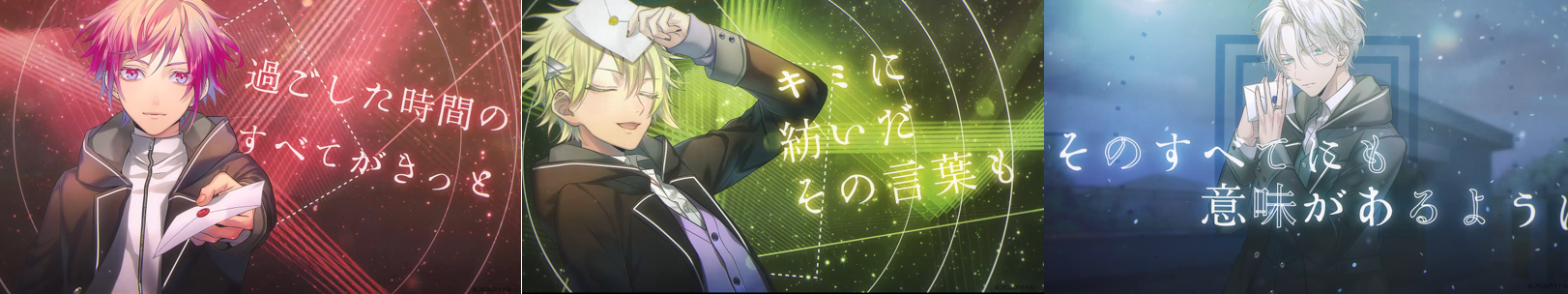 4月23日に公開したソロポエトリーリーディング楽曲は“一度聴いたら耳から離れない新感覚の楽曲”として話題を集め、公開から一か月で3曲の総再生数が約60万回を記録。その第2弾となる今回は、亜月アキト(CV.土田玲央)、yuzu(CV.堀江瞬)、冥王院シン(CV.土岐隼一)の3名が想いを紡いでいく楽曲になる。それぞれの個性が反映された言葉選び、そして3名の掛け合いを楽しもう。