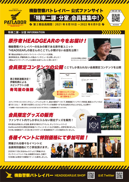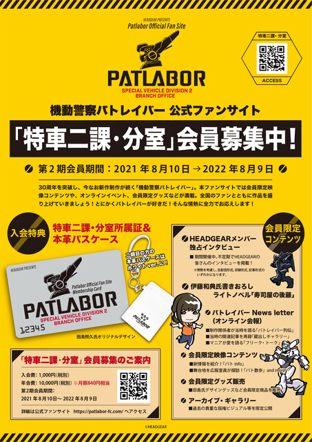 ● 会員期間は2021年8月10日~2022年8月9日まで(8月10日はパトレイバーの日)