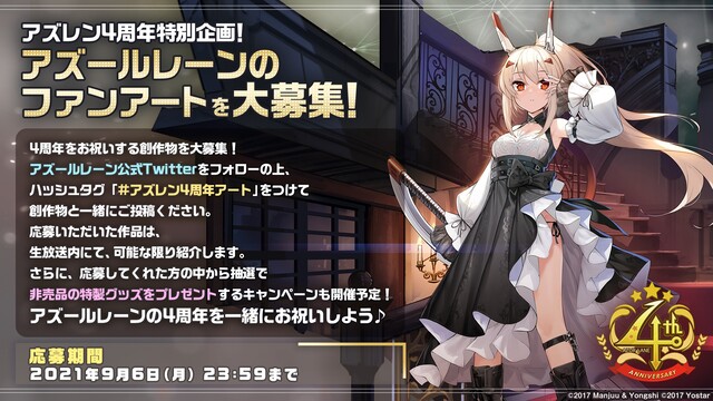 さらにアズールレーン4周年を記念した「アズレン愛」溢れる創作物も大募集。