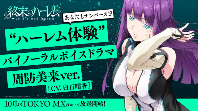 TVアニメ10月放送開始を記念して、“ハーレム体験”バイノーラルボイスドラマを放送まで続々公開。魅惑の美女たちが織りなすバイノーラル収録による臨場感たっぷりのボイスドラマは、TVアニメ『終末のハーレム』公式YouTubeチャンネルにて配信予定。