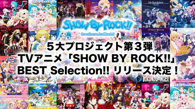 2012年よりスタートしたバンドと音楽をテーマにしたプロジェクト『SHOW BY ROCK!!』から10周年に向けた企画、「Road to 2022!! 目指せ10周年‼︎SHOW BY ROCK!!5大プロジェクト‼︎」の第3弾として、これまでのTVアニメの全楽曲の中から69(ロック)曲をファンの皆様の投票によってセレクトしたベストアルバム、TVアニメ『SHOW BY ROCK!!』BEST Selection!!が2022年にリリースされる事が決定した。アニメシリーズのベストアルバムは初だ。