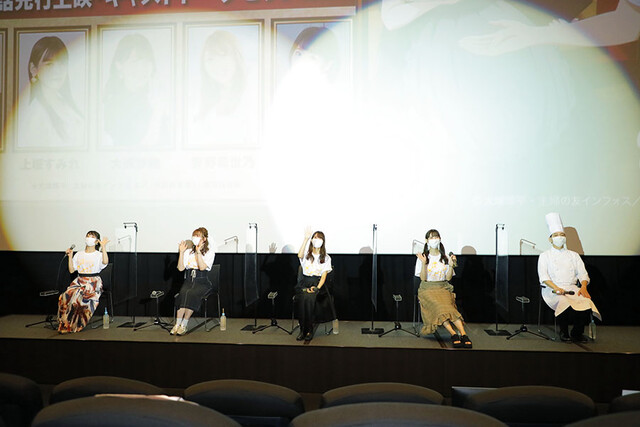 そして、本邦初公開となる本編の第1、2話の上映会が終わると、司会の呼びかけで諏訪部さんをはじめとしたキャスト陣が再び登場。諏訪部さんが冒頭から着用していたコック服にツッコミが入ると、「私服です」と冗談を飛ばし、それぞれ笑顔に。一方、女性陣はこのイベント用に制作された記念Tシャツを着用。上坂さんはオムライスのチャームがついたネックレスとブレスレットを合わせるなど、それぞれのコーディネートにもこだわりがあった。
