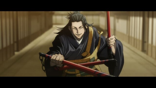 さらには公開となったばかりの本編から、乙骨・真希・棘・パンダ・五条・夏油のアクションシーンのカットも解禁。刀に呪いを込めて戦う乙骨憂太、呪具を片手に呪霊をにらみつける禪院真希、呪言を駆使して呪霊を倒す狗巻 棘、ゴリラモードで戦うパンダ、三節棍を駆使して戦う夏油、そして本編オリジナルとなるバトルシーンが描かれる五条のカットの計6点が初解禁。