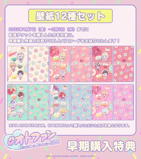 アイディアファクトリー株式会社の女性向けゲームブランド「オトメイト」は、2022年2月20日(日)開催のオトメイトファンイベント「Dessert de Otomate 2022」の配信チケットのうち《OPENREC.tv限定特典》の詳細を公開した。