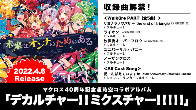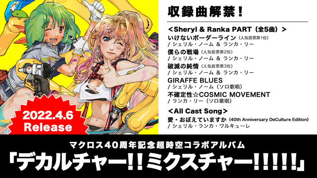 4月6日にリリースされる、マクロス40周年記念超時空コラボアルバム「デカルチャー!!ミクスチャー!!!!!」の全収録曲が明らかとなった。