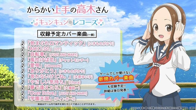 ●「からかい上手の高木さん キュンキュンレコーズ」「気まぐれロマンティック」「学園天国」等、ゲーム内実装の楽曲を解禁!