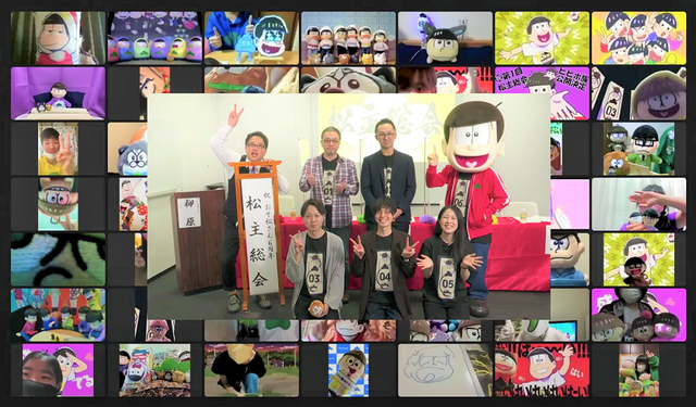 TVアニメ「おそ松さん」6周年を記念して企画されたスペシャルオンラインイベント「松主総会」。Zoomにて開催された本イベントには、「おそ松さん公式ファンクラブ」そして「一般応募」から抽選で選ばれた限定100名の作品ファンの皆様=松主様が招待され、その模様はYouTubeでも生配信されました。開始冒頭、MC・柳原が画面越しに呼びかけると、それぞれにイラスト、グッズディスプレイ、ぬいぐるみなど愛のこもった配信画面で応えます。今回はTVアニメとしては異例の『製作委員会スタッフ』と『ファンの皆様』が直接語り合う、というスペシャル企画。事前に100名の松主様に回答頂いたアンケートを元に赤裸々なトークを繰り広げます。“今だから聞きたいぶっちゃけトーク”では、「製作委員会のみなさんでも意外だったコラボやグッズはありますか?」や「意見が対立した時に気まずい雰囲気にならないですか?」というキワドイ質問が飛び交い、“聞くほどじゃないかも…マニアック質問”では、「製作現場でのキャラクターの呼び方が気になります。」など現場の雰囲気についてのコアな質問も。