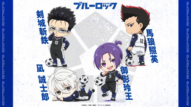 チームXに所属する馬狼照英と、チームVに所属する凪 誠士郎、御影玲王、剣城斬鉄の公式ちびキャライラストも公開。