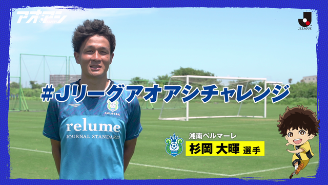 番組エンディングの実写コーナー「#Jリーグアオアシチャレンジ」には、湘南ベルマーレの杉岡大輝選手が登場。杉岡選手が披露するスゴ技にも注目だ。