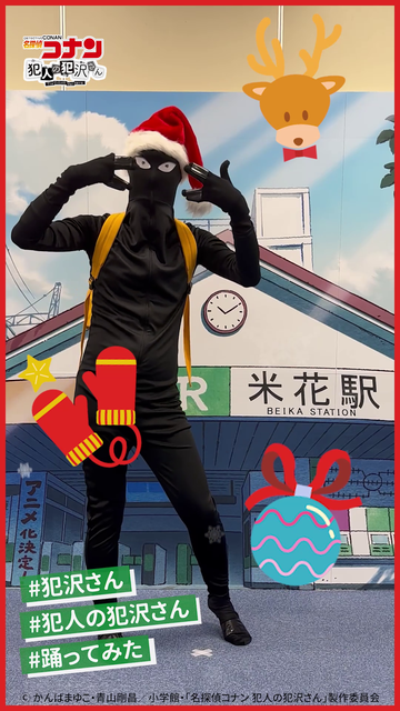 『名探偵コナン 犯人の犯沢さん』は、原案・青山剛昌、かんばまゆこによる「名探偵コナン」でおなじみの黒タイツのようなビジュアルの“犯人”を主人公に描くスピンオフ作品。2017年より「少年サンデーS」にて連載中、コミックス累計発行部数は230万部を突破。世界トップレベルの事件が発生する犯罪都市・米花町に降り立った漆黒の人物“犯人の犯沢さん(仮名)”の日常・クリミナル・ギャグが描かれる。(※累計発行部数はいずれも電子版含む)