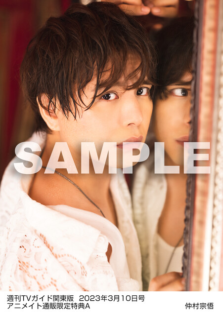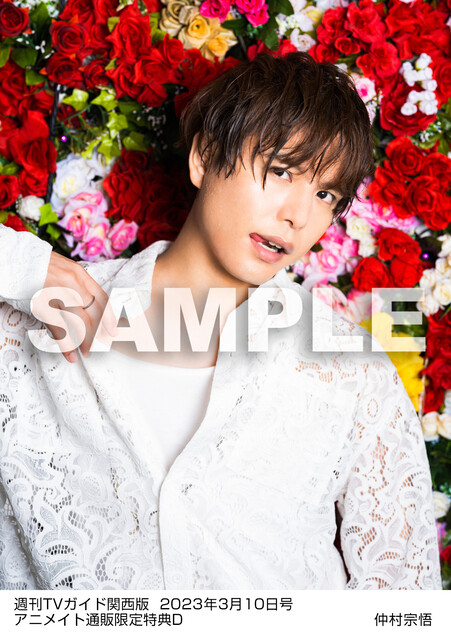 アニメイト通販にて「TVガイド関東版2023年3月10日号」、または「TVガイド関西版2023年3月10日号」を購入すると、<仲村宗悟 生写真>を1枚プレゼント。