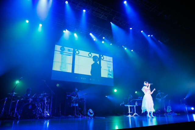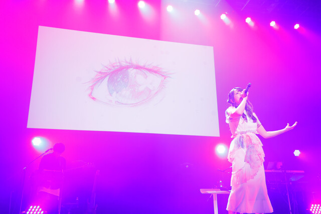 後半戦は、“夢”、“安らぎ”、“懐かしさ”といったテーマの楽曲を続けて披露。ステージの背景には、彼女自身のイラストを用いたリリックビデオが投影され、そこからも彼女の世界観が色濃く表れていった。終盤の「For good」は、”永遠”をテーマにした壮大なバラードで、これまでの選択や道のりを総括するハイライトを演出した。