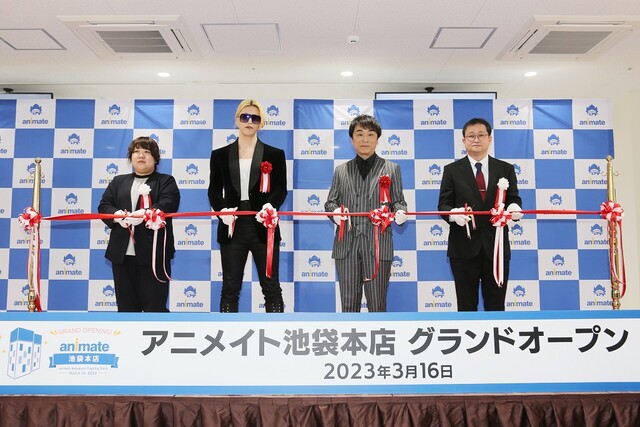 3月16日に行われた、アニメイト池袋本店オープニングセレモニーに登壇したのは、アニメイトの宣伝キャラクター“アニメ店長”の声を務める声優の関智一、アニメ好きの ROLAND、㈱アニメイト代表取締役・藤樹潤、アニメイト池袋本店店長・上村智佳子の4名。グランドオープンを記念し、テープカットを行ったほか、アニメやアニメイト愛を語り尽くした。
