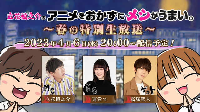 ■『立花慎之介のアニメをおかずにメシがうまい。~春の特別生放送~』が配信決定!