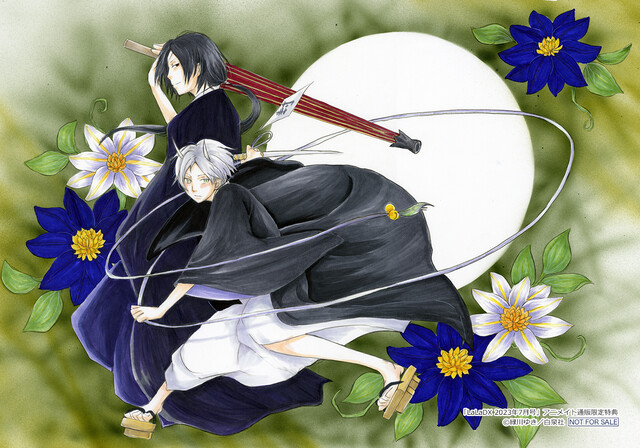 『LaLa』2023年7月号と『夏目友人帳』20周年記念号となる『LaLaDX』2023年7月号はつながる表紙。両誌を並べるとひとつのイラストになる特別仕様だ。