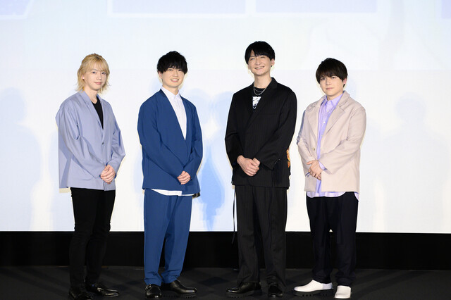 TVアニメ第23話と第24話の上映とキャストのトークコーナーが行われた今回のイベントに登壇したのは、浦 和希さん(潔 世一役)、海渡 翼さん(蜂楽 廻役)、島﨑信長さん(凪 誠士郎役)、内田雄馬さん(御影玲王役)の4人。満員となった映画館だったが、この日の当選倍率はなんと10倍以上! 改めてTVアニメ『ブルーロック』の勢いと熱さが伝わってくる。
