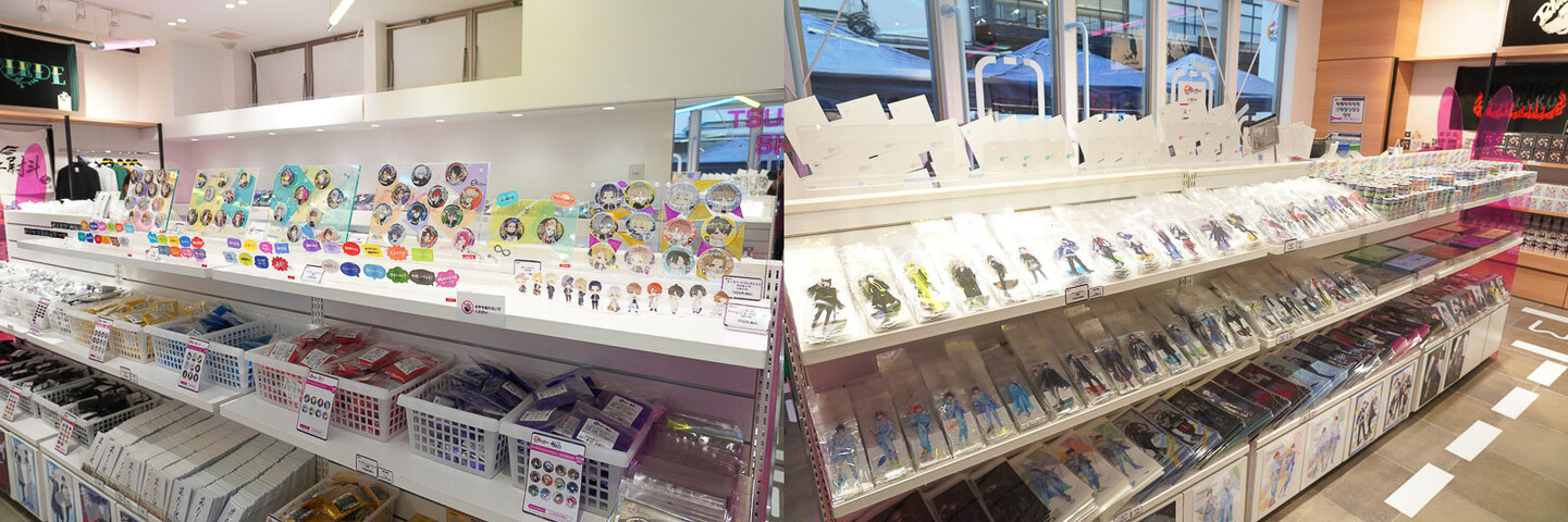 1階の「TSUKIPRO SHOP」には、“YAMANOTE WAR”に挑む各キャラクターの自由なヤンチャさ、カッコよさが落とし込まれたグッズ、アイテムが販売中です。