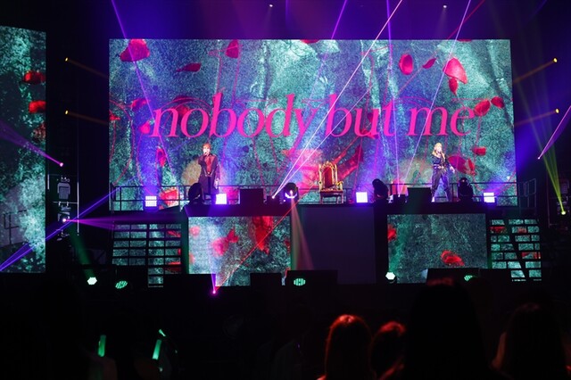 また、【AMPRULE(アンプルール)】燕 東夏(よん どんは)役・井上麻里奈はステージ上で抜群の存在感を見せ、観客を圧倒。井上が演じる燕 東夏は韓国の財閥の御曹司で、今回のステージ上では黄金の装飾が施された椅子に腰をかけながら堂々たるラップを歌い上げる一幕も。楽曲「Do as I say」に登場するリリック「I'm EMPERA」を完璧に体現しました。