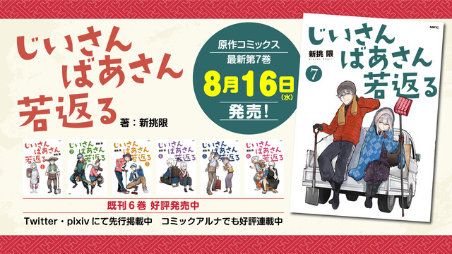 シリーズ累計100万部突破(電子含む)、Pixiv累計1億PV突破、新挑限による大人気WEB発コミックス『じいさんばあさん若返る』TVアニメ制作決定。青森県のある農村でのんびり暮らしていた高齢夫婦の「正蔵」と「イネ」が若返った姿を描いたティザービジュアル公開。穏やかにリンゴを剥きながら微笑み合う二人だが、果たしてどんなおしどり老夫婦ラブコメディを見せてくれるのか。TVアニメ化決定を受けて、原作者・新挑限先生からお祝いイラスト&コメントが到着。さらに、アニメ公式Twitterにて豪華賞品がもらえるフォロー&リツイートキャンペーンも実施中だ。