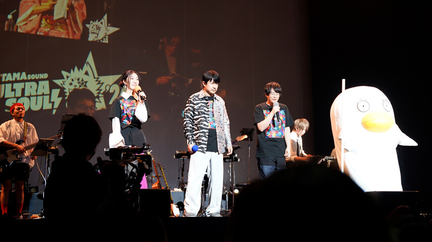 もともとは2020年に実施がアナウンスされるも、コロナ禍に伴い中止となった『銀魂SOUND ULTRA SOUL!』待望の再始動となる本公演。さらにあまりアニメイベントではみられない「劇伴=劇中で使用されている背景音楽(BGM)」へと全面的にフィーチャーしたライブでありつつも万事屋一同のキャストも登壇するとあり、一体どんな内容になるかという期待感が会場内に溢れる中、突如チャイムの音が鳴り響くと同時にモニター上にはアニメ「銀魂」お馴染みの万事屋外観カットが出現。万事屋キャストの影ナレによるBGオンリーがスタートし、時事ネタも交えたやり取りが繰り広げられると会場は一気に「銀魂」色に染まる。