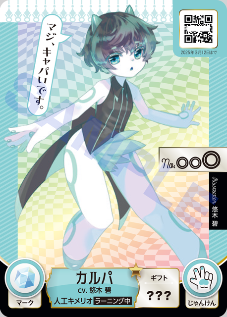 カルパ、Sunday:悠木碧 Monday:鬼頭明里 Tuesday:寿美菜子 Wednesday:雨宮天 Thursday:田村睦心 Friday:早見沙織 Saturday:佐倉綾音 イチゴ:竹達彩奈