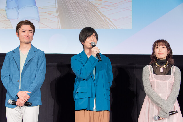 ●斉藤壮馬(宮坂拓己役)、降幡愛(松原照子役)、高松信司総監督、春日森春木監督が登壇