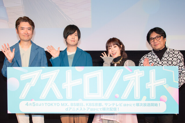 本作の放送に先駆けて、 TVアニメ『アストロノオト』1話&2話先行上映会イベントを開催。斉藤壮馬(宮坂拓己役)、降幡愛(松原照子役)、高松信司総監督、春日森春木監督が登壇した。