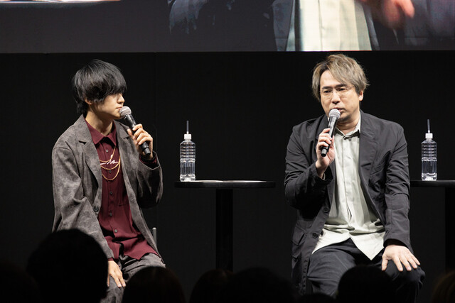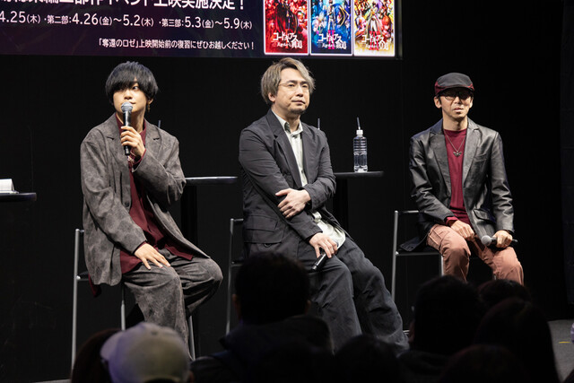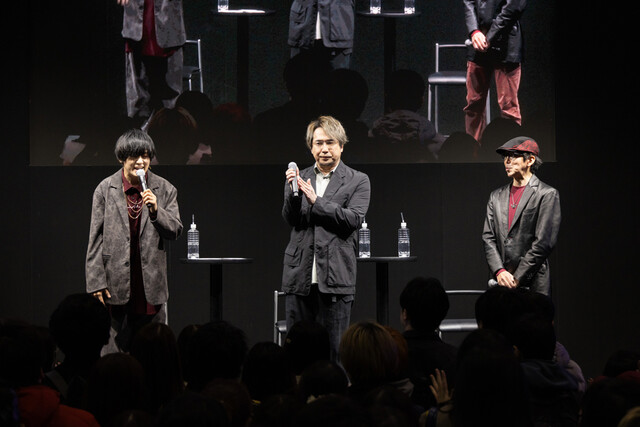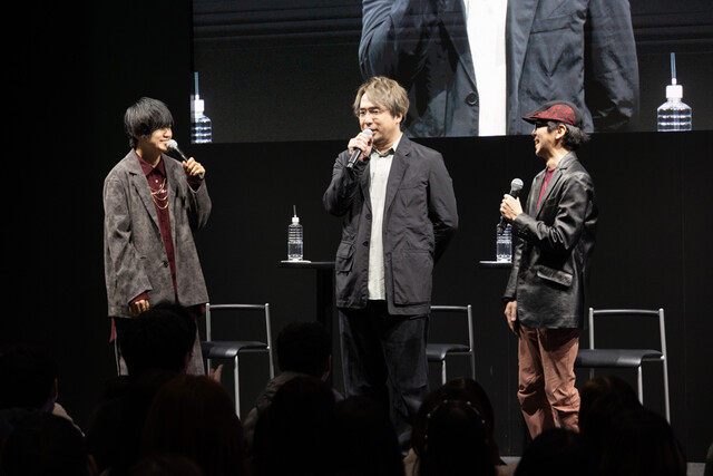 その後、本日解禁されたばかりの最新の予告映像がスクリーンに流れ、観客から拍手が巻き起こった。映像で使用されていた楽曲、TeddyLoid(テディロイド)さんプロデュースによる満島ひかりさんが歌うエンディング主題歌「ロゼ (Prod.TeddyLoid)」について、満島ひかりさんからのコメントを天﨑さんが代読する形で紹介された。また、エンディング主題歌「ロゼ (Prod.TeddyLoid)」を受け取った感想を聞かれた大橋監督は「作品の性質上、人が死んでいくことが多い作品なので、彼らの魂が浄化されるような曲でお願いしますとオーダーさせて頂いたのですが、何も言うことのない素晴らしい楽曲だと思います」と印象を語った。