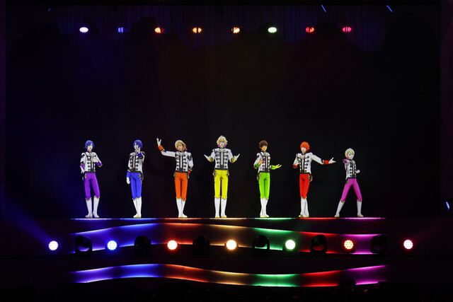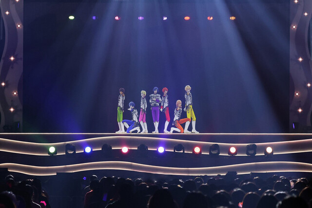 ソロ曲はグループユニット曲とはまた違った楽しさがあるが、実は緊張するメンバーもいるとのこと(挙手したのは真斗、トキヤ、翔)。また、お互いの振付を真似するなどわちゃわちゃしたやり取りもありつつ、パフォーマンスの感想や想いが伝わったかなどファンへの問いかけも交えたトークに、客席からそこかしこで歓声が上がっていた。そして、7人の魅力がギュッと詰まったグループ曲「天空のミラクルスター」でバトンを片手にパフォーマンスを繰り広げ、色とりどりの虹のような光に包まれたひとときを届けた。