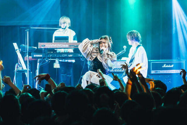 「すごい元気で、出てきた時に、床がすごい揺れててびっくりしました(笑)今日はとても攻め攻めな感じで行きたいと思います!!楽しんでいきましょー!」とオーディエンスの期待を煽り、「Tears BREAKER」「Absolute Soul」「Theater of Life」と力強く生命力のある楽曲を続けて披露。一気にフロアの熱も上がる。
