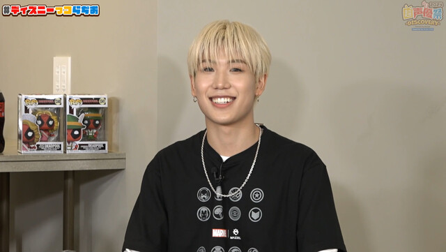 各種コラボ情報の紹介コーナーの最後には、マーベルとの商品コラボを行ったダンス&ボーカルグループ・MAZZELのKAIRYUとHAYATOの二人が特別ゲストとして登場。二人のエピソードトークと、マーベルのデザイナーが作成したMAZZELメンバーのロゴ紹介で大盛り上がりしました。そして、特別ゲストの2人も一緒にバラエティ企画「混ぜるなキケン⁉無茶ぶり演技対決」を実施。ランダムで引いた「誰」「シーン」「セリフ」を組み合わせてエチュードで演じるという内容です。トップバッターとして抜擢された浪川は難しいお題に表情が曇りながらもなんとかやり切ります。そのあともHAYATO、森川、伊藤が難しいシチュエーションに苦戦しながらもお題をやり切る様子に現場では笑いが起こりました。