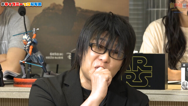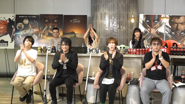 キャスト解禁VTRの中で「俺俺俺~‼」と大きく体を動かしながらコメントし、スタジオに場面が戻ったあと出演者からの祝福に加え、「おめでとうございます!」「うわあああああああ!!!!」「やったー!」など視聴者からのコメントも殺到。「決まった時はどうでした?」と緑川に質問されると、「嬉しかったですよ、スター・ウォーズですし」と諏訪部。そんな様子を見ていた同じくジェダイのオビ=ワン役森川は「諏訪部の、ジェダイ(時代)だね」とダジャレを交えて場を盛り上げました。また出演者全員で諏訪部に「スター・ウォーズ声優の世界へようこそ」と話すシーンも。しかしまだ、スター・ウォーズの声優を務めたことが無いという平川は、「僕は、ようこそされてないです。よろしくお願いします!」と画面に向かって頭を下げていました。「ひらりんww」「出てそうだけど」のコメントが届きました。諏訪部の声も入った、初解禁となる『スター・ウォーズ:アコライト』の日本語吹替版予告映像も放映されました。