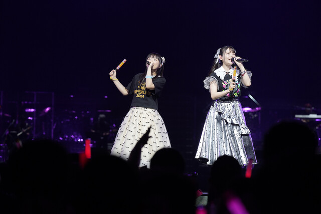 キンスパはコラボステージも魅力。Day1では、蒼井翔太×七海ひろきが、水樹奈々とT.M.Revolutionの「Preserved Roses」を、男女パートを入れ替えて歌唱し圧倒的なパワーで観客を魅了した。上坂は堀江と共に「天使のゆびきり」を歌唱し、2人もペンライトを揺らして楽しんだ。また田村と水樹は、2人の共演作である『魔法少女リリカルなのは』シリーズの楽曲を2曲歌い、水樹が差し伸べた手を田村が取る場面もあり、アニメのシーンが思い出されて胸をアツくしたファンも多いだろう。